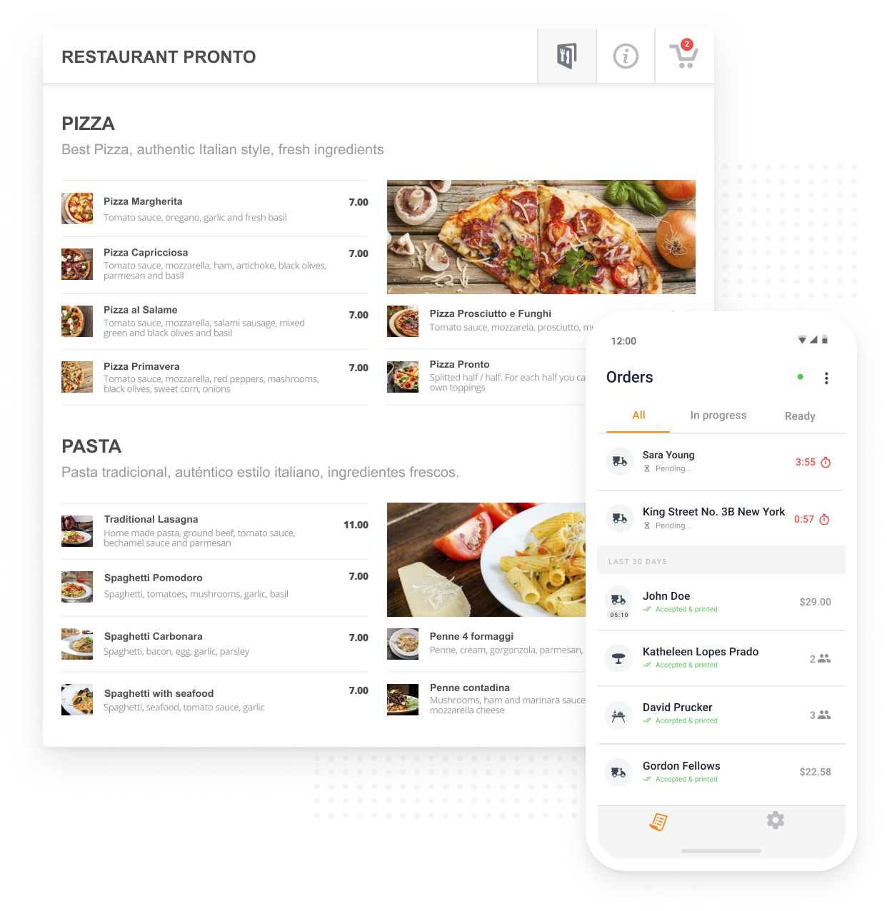 Con il nostro sistema di ordinazione per ristoranti, puoi creare il tuo account e cominciare a ricevere ordini online in pochi minuti direttamente da: