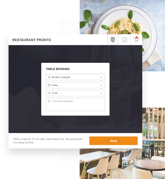 Con le funzioni “Prenotazione Tavoli” e “Pre-ordine” i tuoi clienti potranno prenotare facilmente un tavolo e ordinare in anticipo il loro piatto preferito.